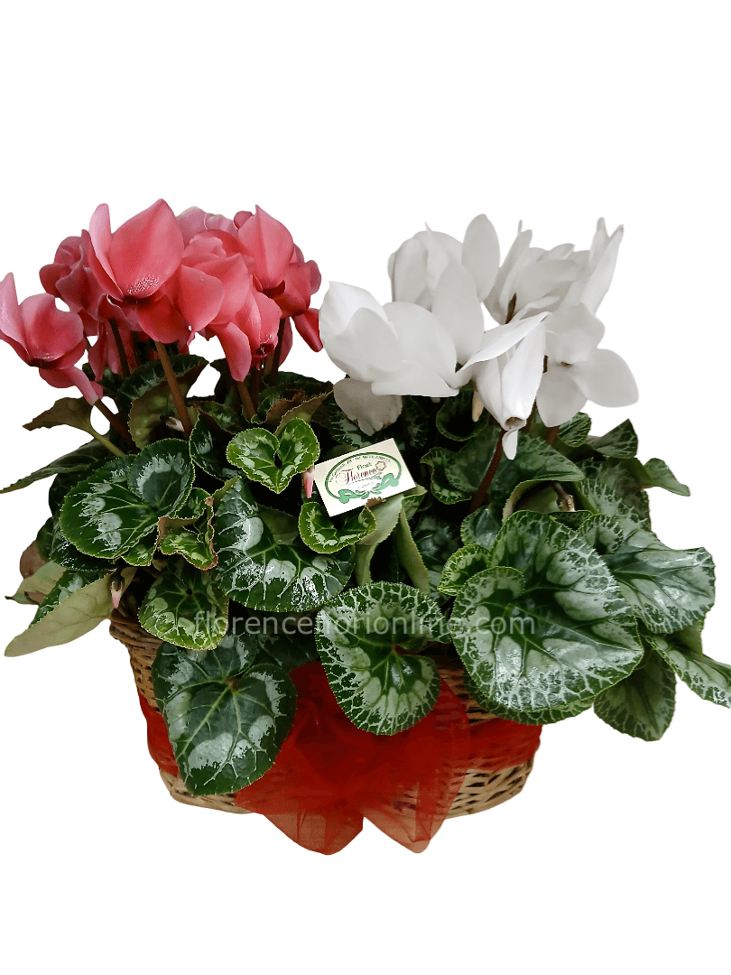 Per i tuoi auguri a famigliari o amici, acquista il nostro cestino con 2 graziosi ciclamini, porteremo i tuoi auguri direttamente a domicilio!