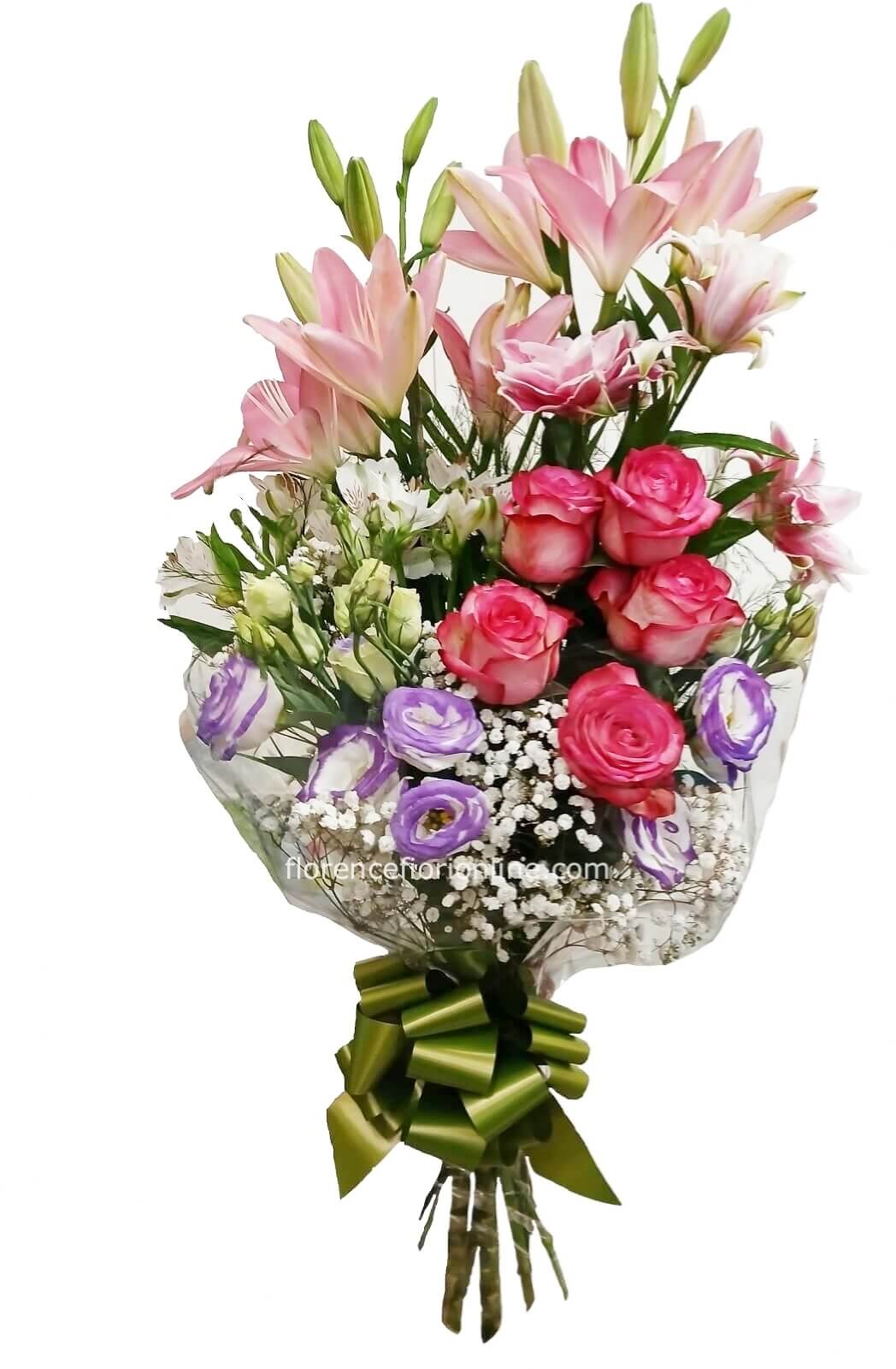 Fascio di fiori con lilium, rose eleganti e fiori di stagione – Bouquet raffinato per ogni occasione