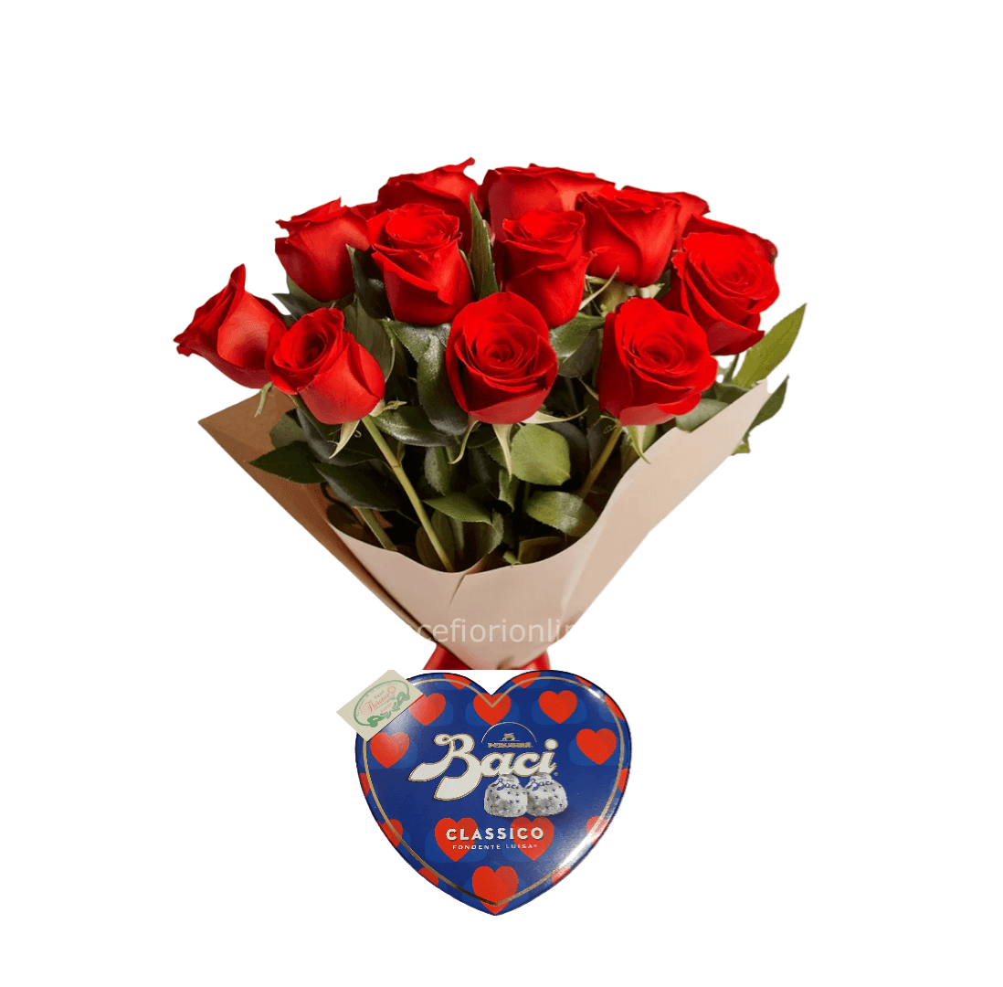 🌹Dolce composizione di rose fresche abbinate a una confezione di cioccolatini, ideale per sorprendere una persona speciale. I cioccolatini possono essere Baci Perugina, Lindt o Ferrero Rocher, secondo disponibilità.