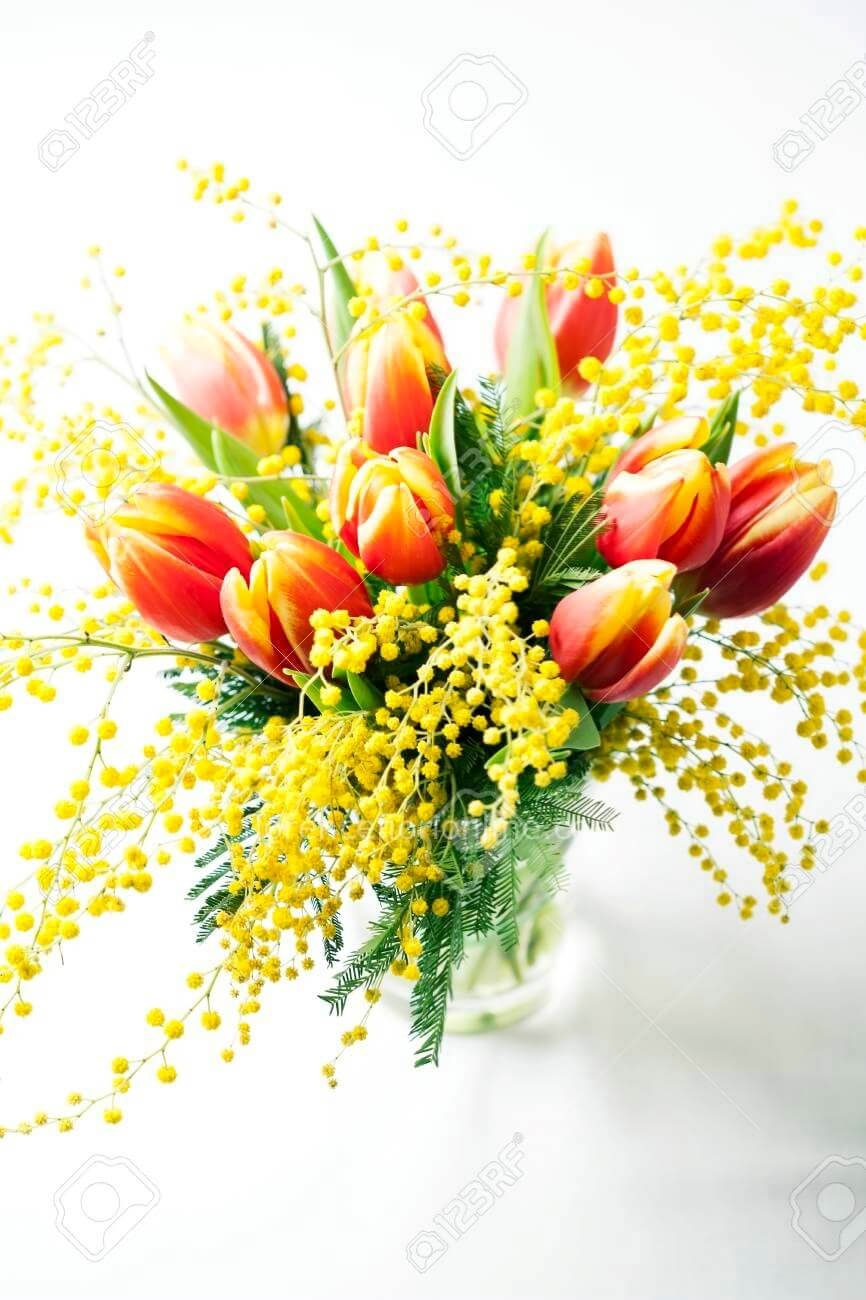 Bouquet di tulipani con mimosa. (Medio)